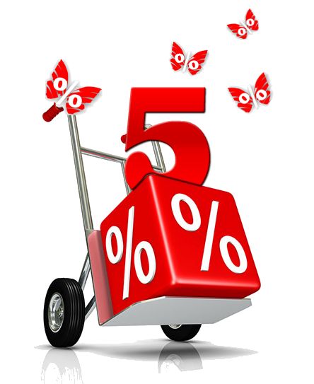 • Скидка 5% не будет действовать на товары со скидкой в магазине.